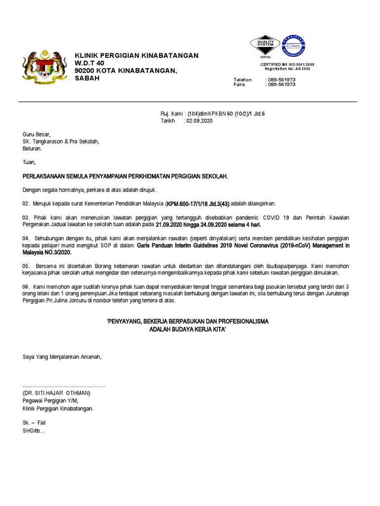Surat Lawatan Ke Sk Tangkarason Tahun 2020 Pdf